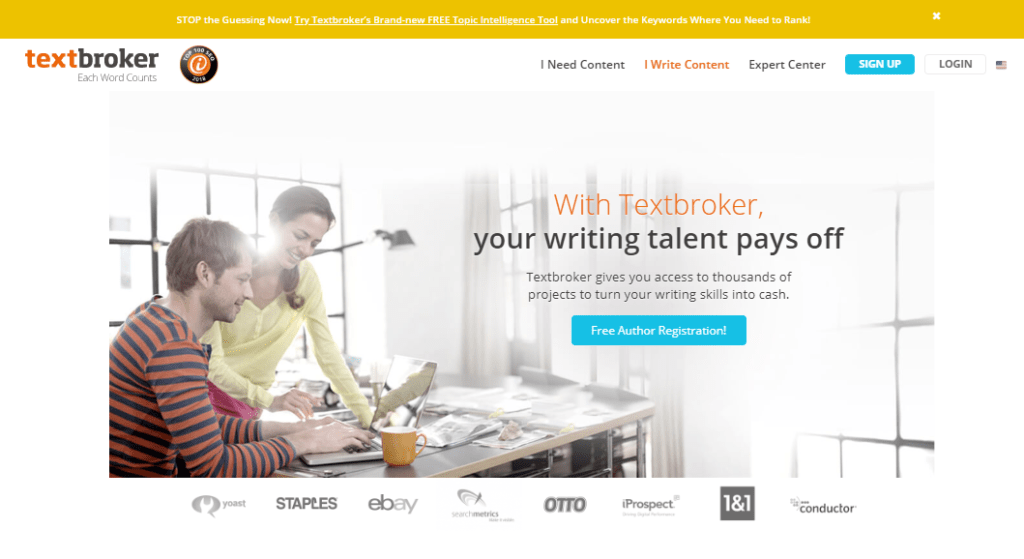 - Free registration: Writing for Textbroker is 100% free of charge for authors